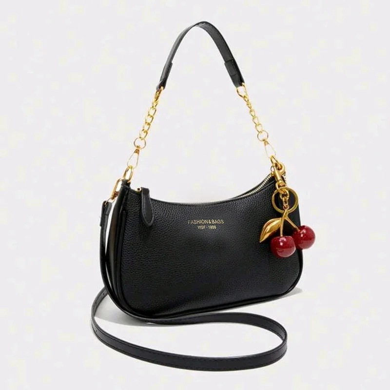 Cherry Pendant Crossbody Bag for Women PU Leather Crescent Bag Adjustable Strap Underarm Bag Closure Handbag for Work Travel
