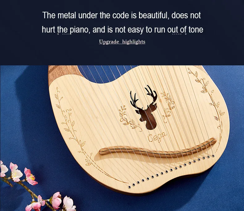 lyre harp features mahogany wood wooden resonance box and strong steel strings, sound richer and warmer, pleasant musical leisure for you.