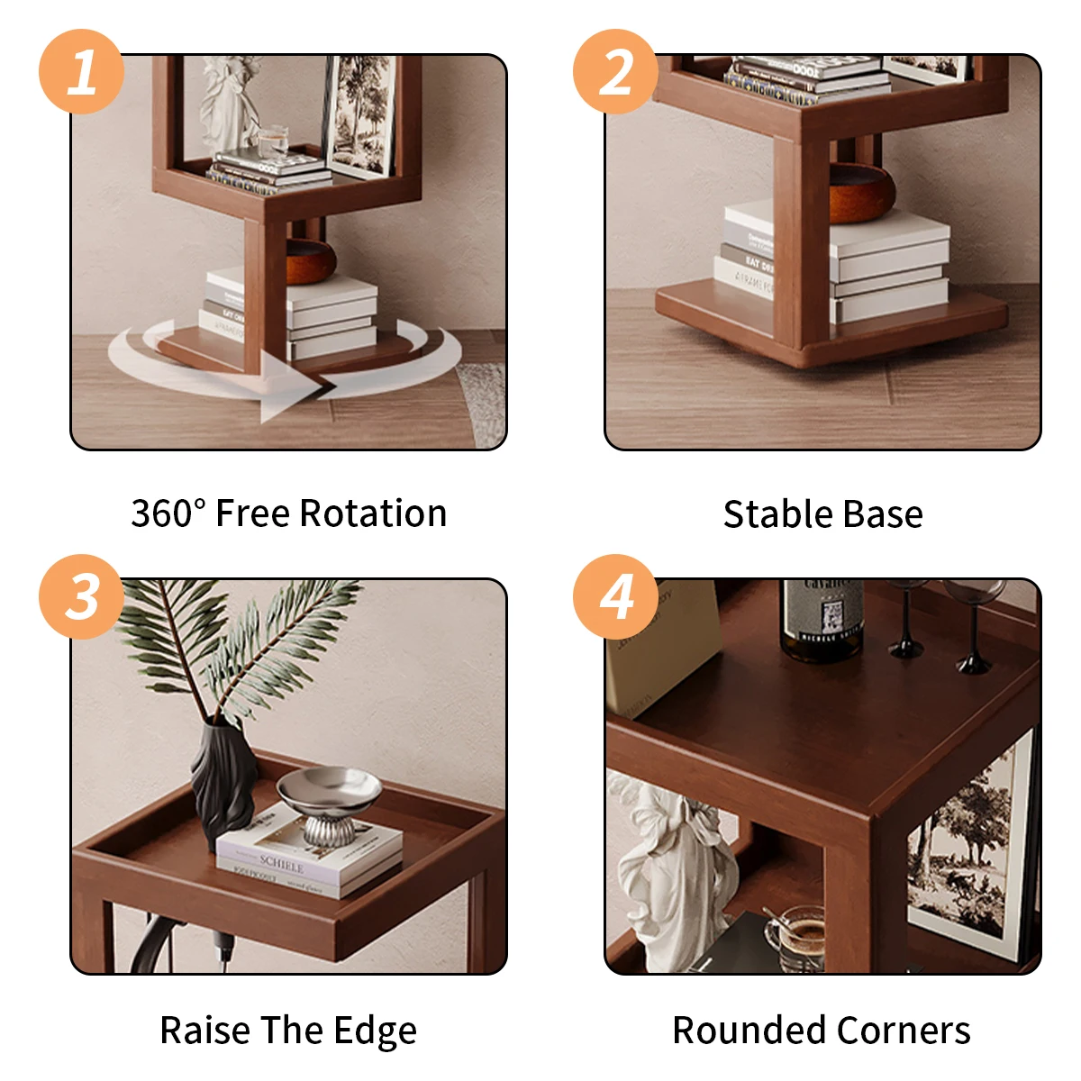 Multi-Tier Bamboo Storage Side/Bedside Table - 3/4/5 Tier Modern Nightstand for Bedrooms & Living Rooms (Small Spaces)