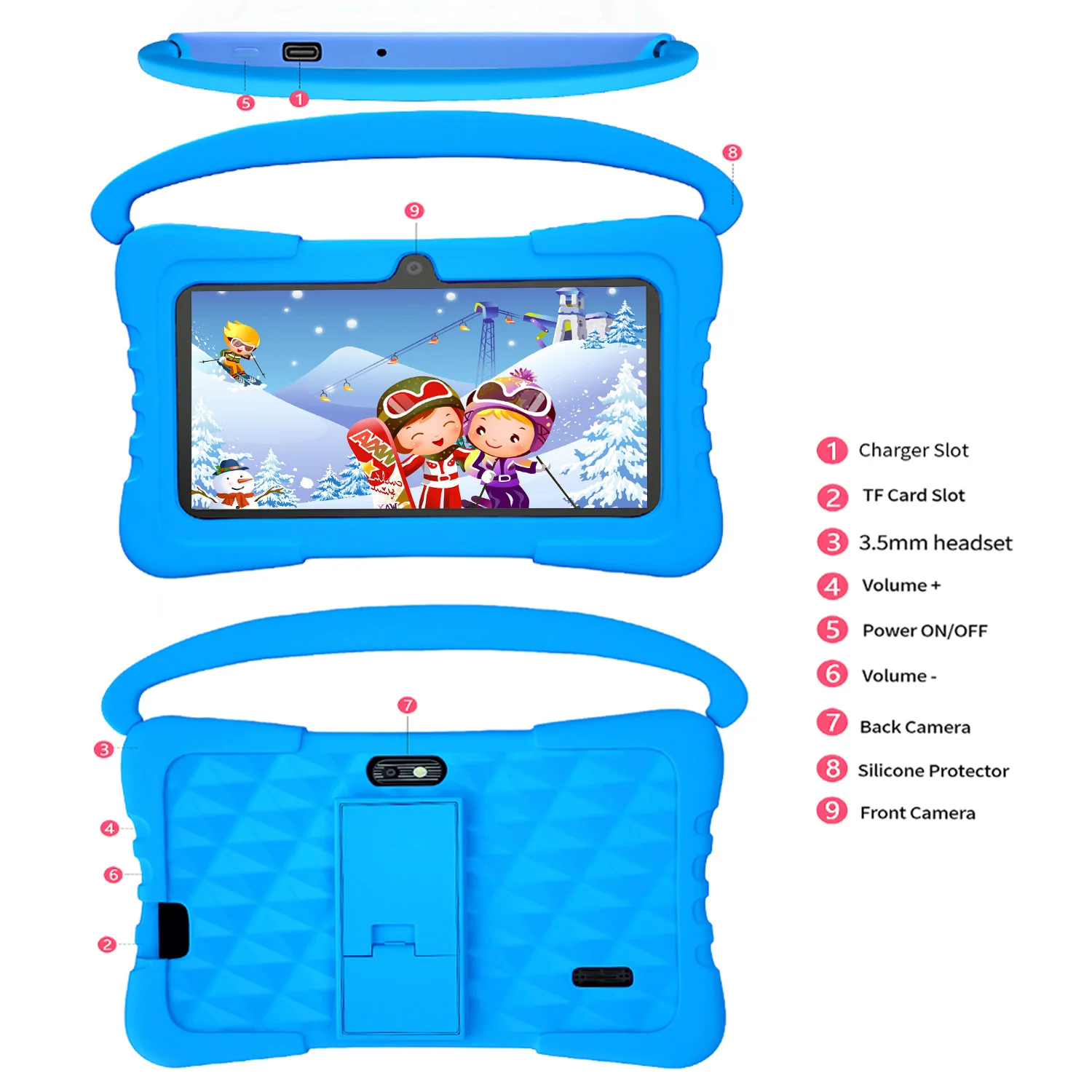 Feature: FM,OTG,ULTRA SLIM,Dual Cameras,Kids Tablets