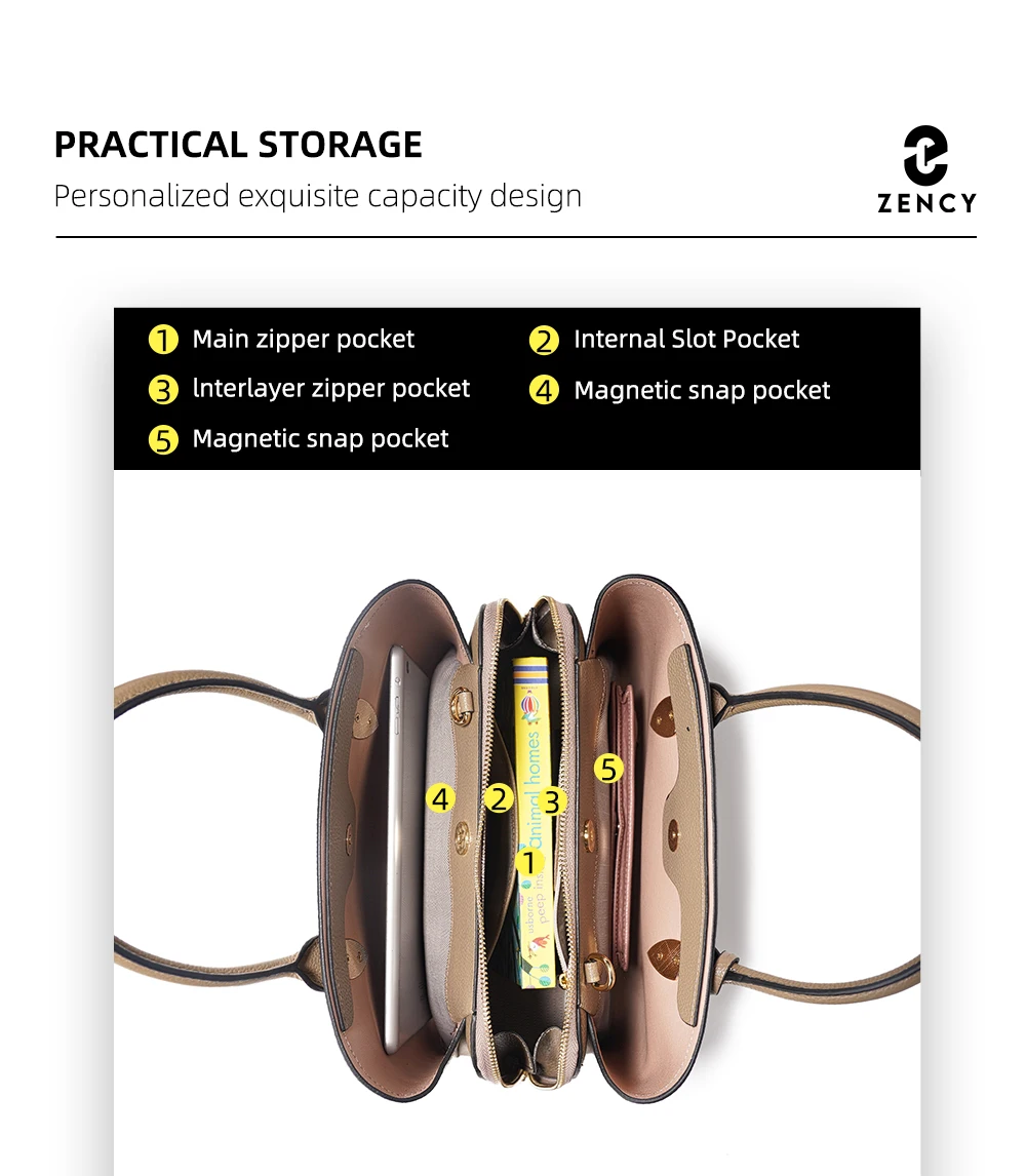 Zency Women's Genuine Leather Large Shopper Bag Designer Shoulder Bags Handbag Bucket Crossbody 2025 leather Top Handles Bags